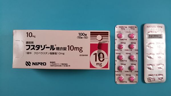 日本での販売名はフスタゾール(HUSTAZOL)で、咳を表すHustenから名付けられた。糖衣錠はクロペラスチン塩酸塩、散剤・小児用錠剤・シロップ剤はフェンジゾ酸クロペラスチンを主成分とする。糖衣錠と散、小児用錠は感冒、急性・慢性気管支炎、気管支拡張症、肺結核および肺がん、シロップ剤は感冒、流行性感冒、気管支炎、気管支拡張症にともなう咳嗽に、それぞれ有効である。求心路並びに遠心路には作用せず、咳中枢に直接作用すると考えられている。